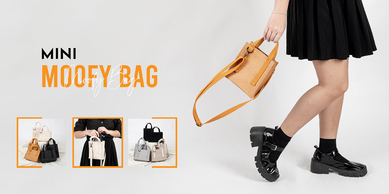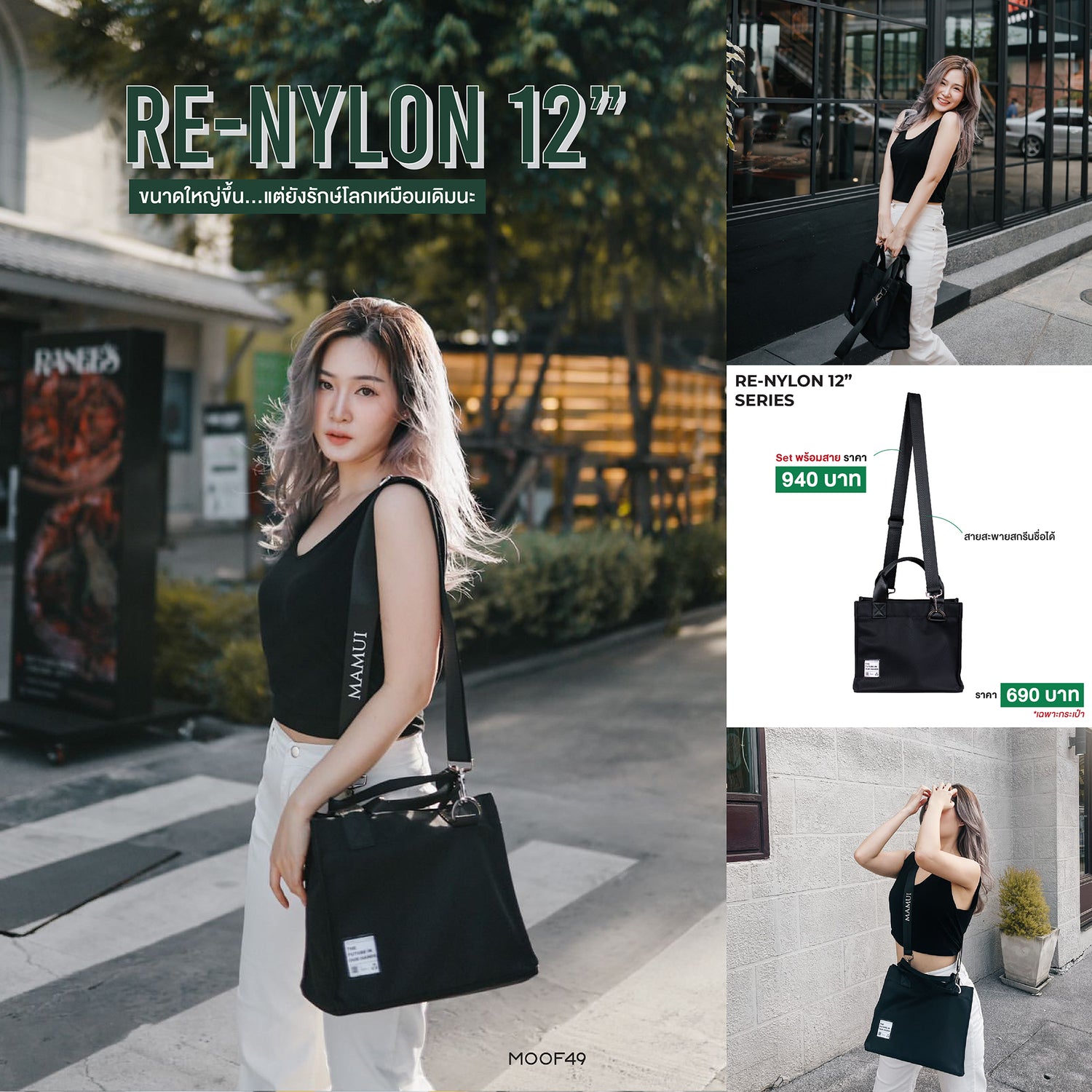 กระเป๋าผ้าไนล่อนสไตล์ของ Moof49 ทรงสวย มีสายสะพายให้ในเซทด้วยนะ