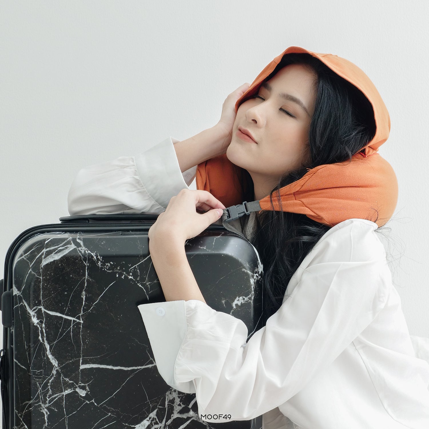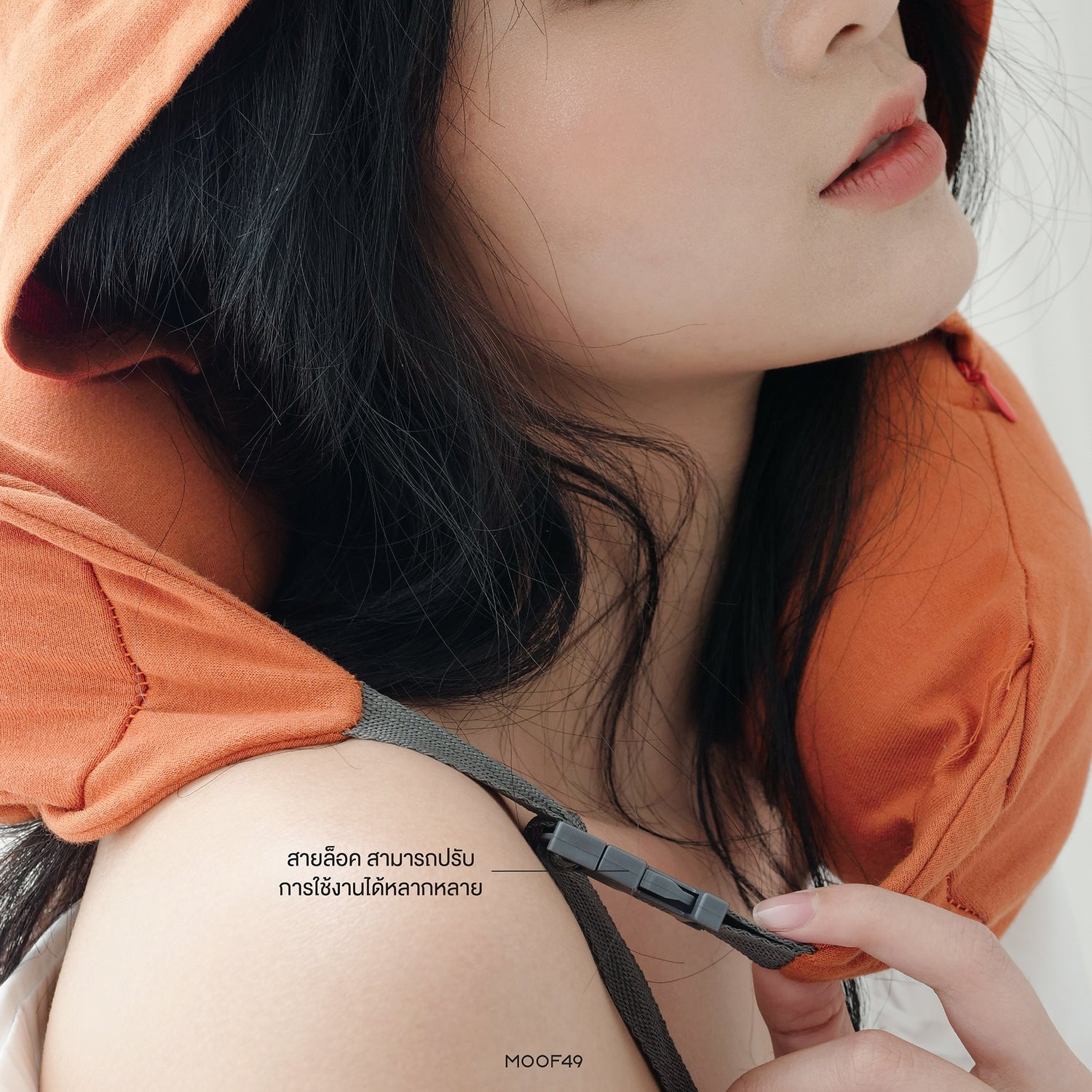 หมอนรองคอแบบมีฮู้ด พกพาสะดวก สามารถแขวนไว้กับกระเป๋าเดินทางได้